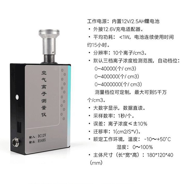 負氧離子 0~500000(個/ cm3) 1個離子/cm3 離子濃度≤±15% ≤1min ±5% / /